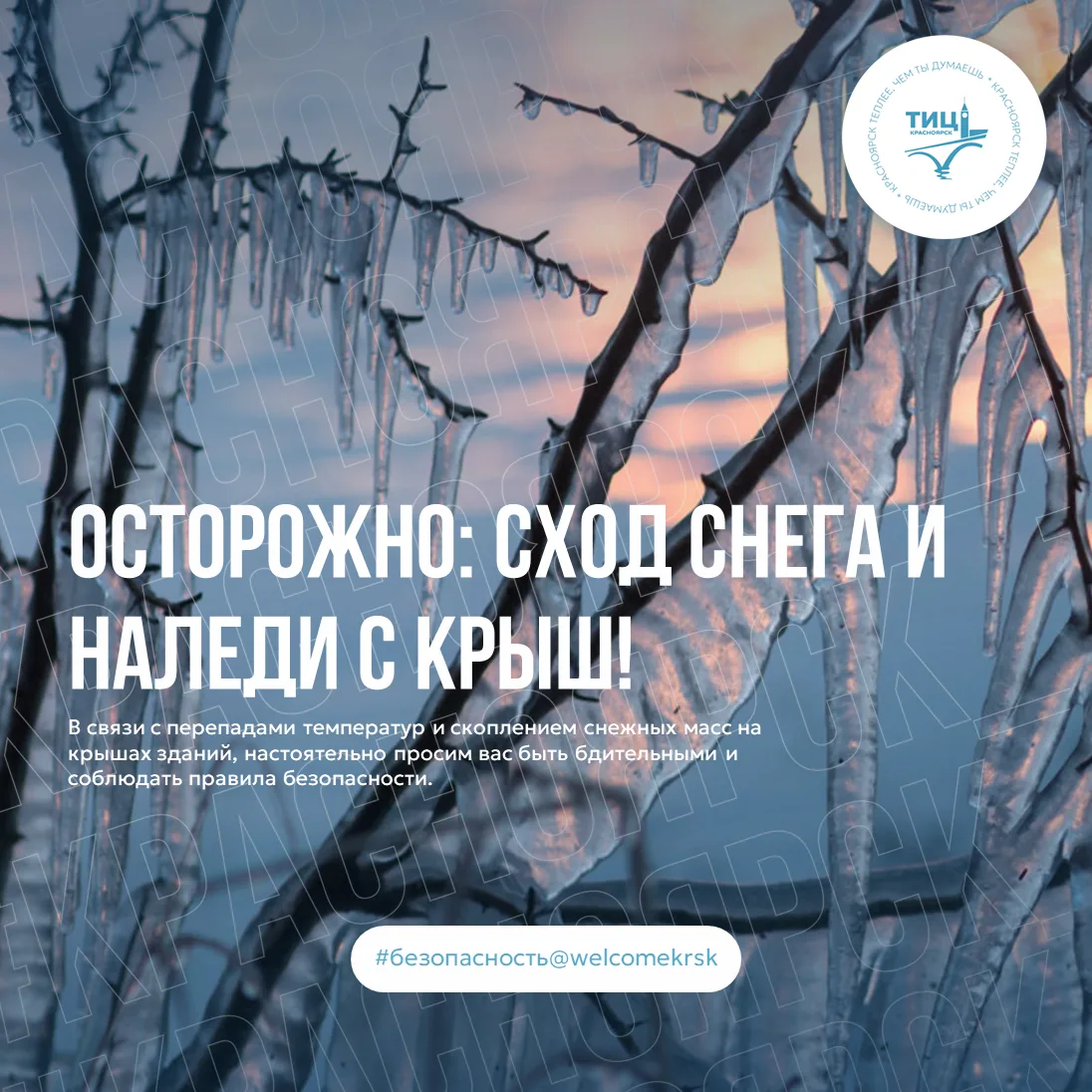 В связи с перепадами температур и скоплением снежных масс на крышах зданий, настоятельно просим вас быть бдительными и соблюдать правила безопасности. Падение сосулек и снежных наростов может привести к тяжелым травмам.