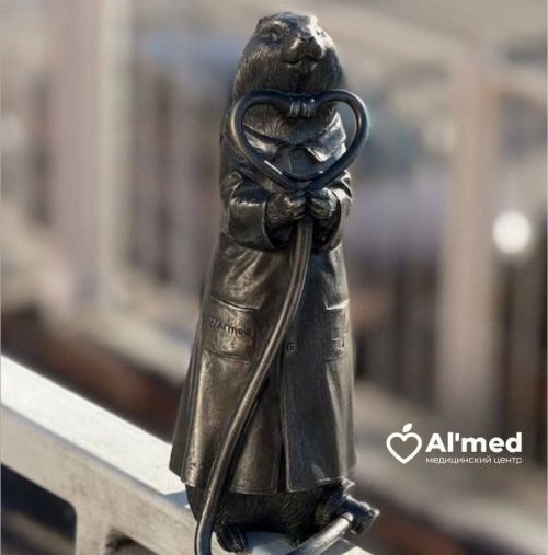 В центре Красноярска, рядом с клиникой на улице Качинской, поселился ещё один бронзовый суслик. На этот раз в образе доктора — в халате и с фонендоскопом на шее.